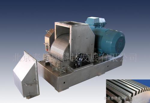 銼磨機轉子在電機皮帶驅動下,轉子轉速達到2100r/min,產(chǎn)生強大的離心力。鋸條組件在強大離心力作用下,將安裝有鋸條的夾持條組件從槽內(nèi)向外甩出,卡緊在轉子內(nèi)槽斜面固定。同時鋸條的齒尖高出轉子外表面3mm,銼刀與 轉子表面距離為4.8~5.0mm,鋸條齒尖與銼刀之間的間隙調(diào)整為1.8~2.0mm之間。經(jīng)螺旋輸送機送來的薯類原料進入到銼磨機殼**,由裝有鋸條的轉子將原料前端狹小區(qū)域與銼刀接觸進行刨絲,簡稱刨絲過程。被拉成絲的漿料由轉子帶入銼刀下部,在轉子與篩網(wǎng)之間再次磨碎,并且將顆粒狀**壁磨碎到0.05~1.5mm細小粒徑。使**壁盡可能破裂,釋放出淀粉顆粒。銼磨機工作原理如下圖所示,磨碎后的漿料通過篩網(wǎng)的孔徑(15mmx1.5mm)自流到銼磨機下部帶有坡度溜槽,再自流到漿料池,沒有通過篩網(wǎng)大于2.0mm以上片狀物、塊狀物,由裝有鋸條的轉子帶到轉子后端與銼刀接觸繼續(xù)銼磨,最終銼磨達到能通過篩網(wǎng)孔徑為止。這時原料**壁基本被破裂,使淀粉顆粒充分游離出來。